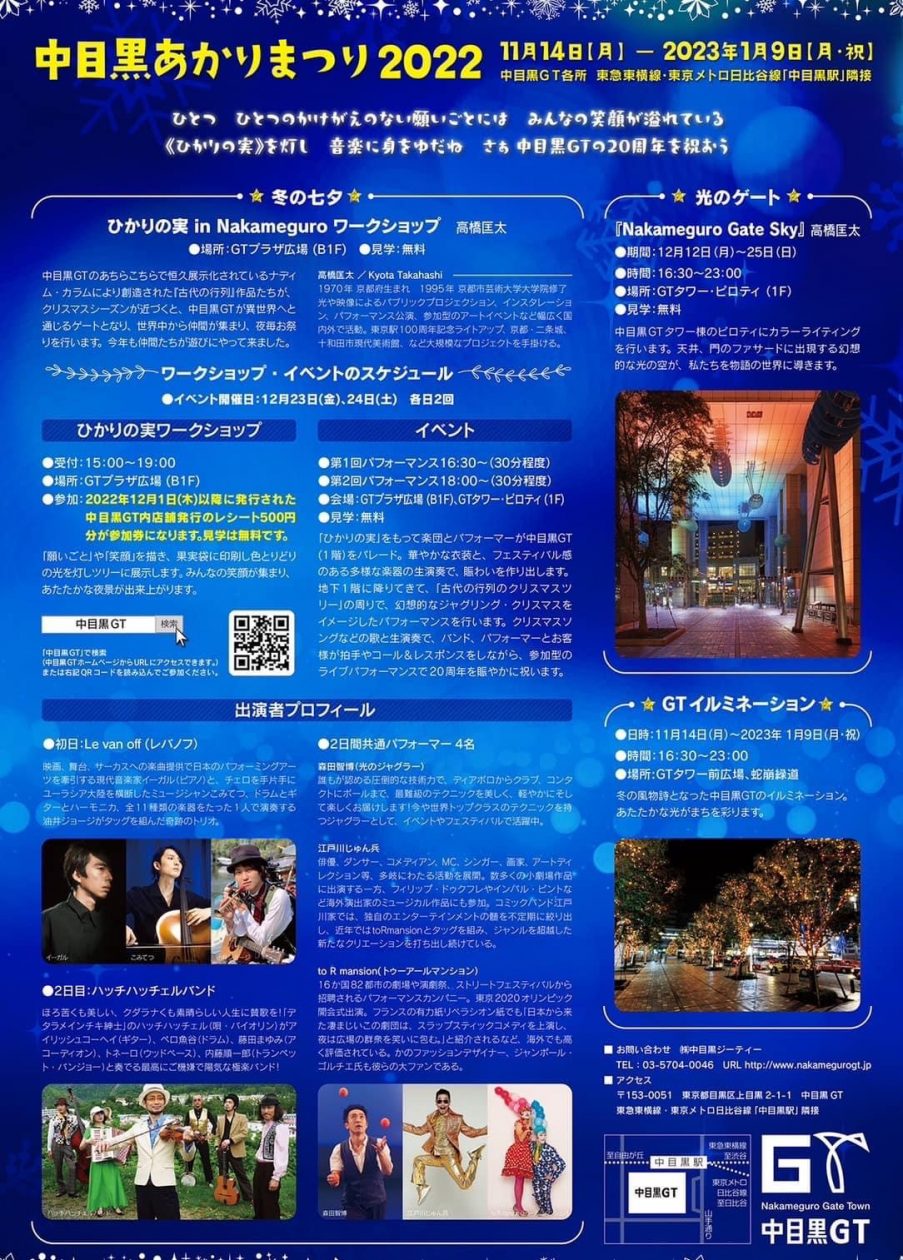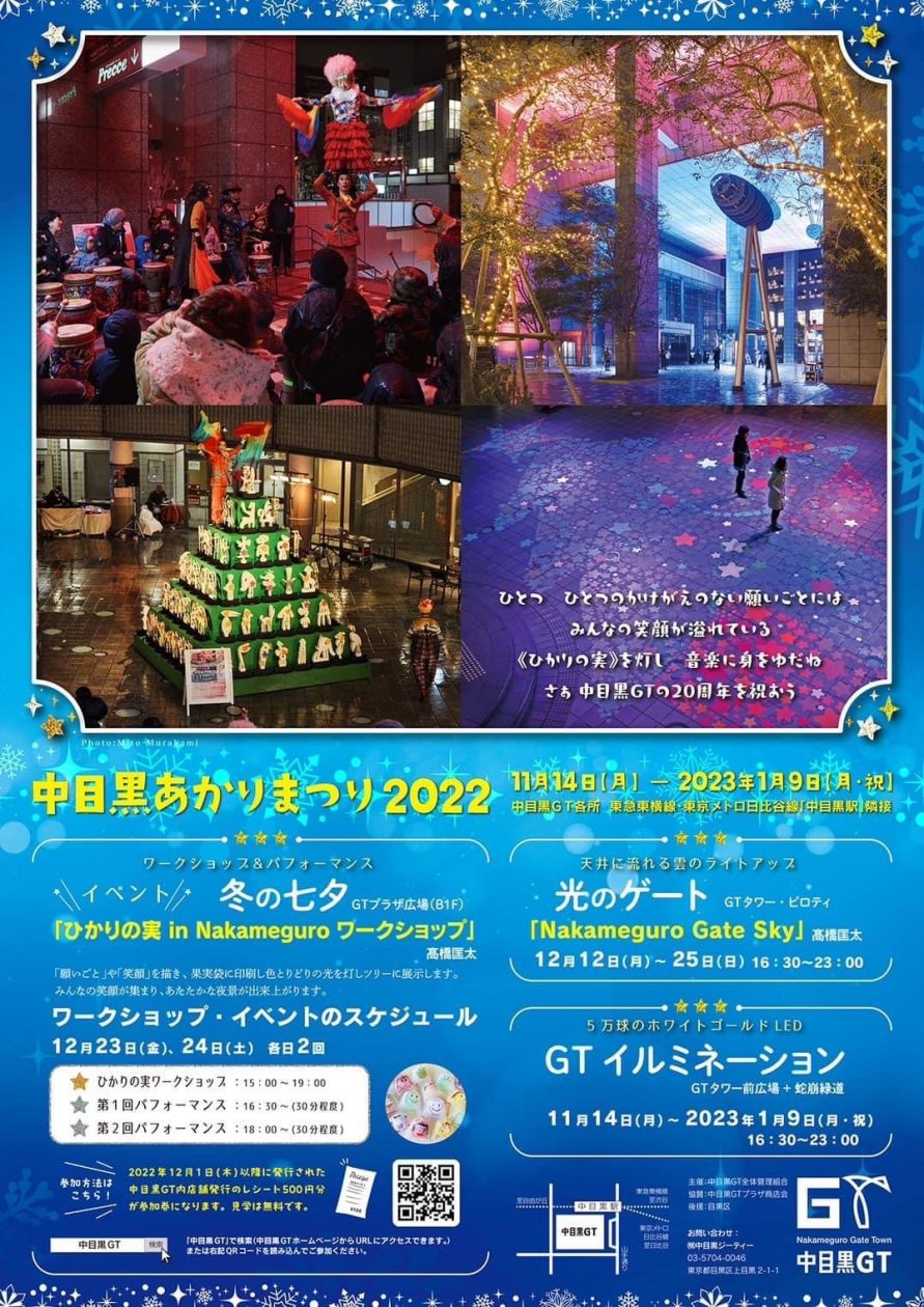 2022年12月1日(木)以降に発行された中目黒GT内店舗発行のレシート500円分が参加券になります。ワークショップ会場すぐお隣にスーパーやスタバ、カフェもあります!