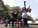 名画をたどるレース形式のパフォーマンス。 「風の谷のナウシカ」「トップガン」「フォレストガンプ」「レオン」など、エンターテイメント性の高いシーンを スピーディーに展開する作品。 空の上や、海の中、身体と想像力で空間を変幻自在に変化させ、皆様を夢の世界へお連れします。 フランスのアビニョン演劇祭でも大好評を博した作品。 出演者:4名、上演時間:20-30分、使用エリア:幅5m×奥行4m